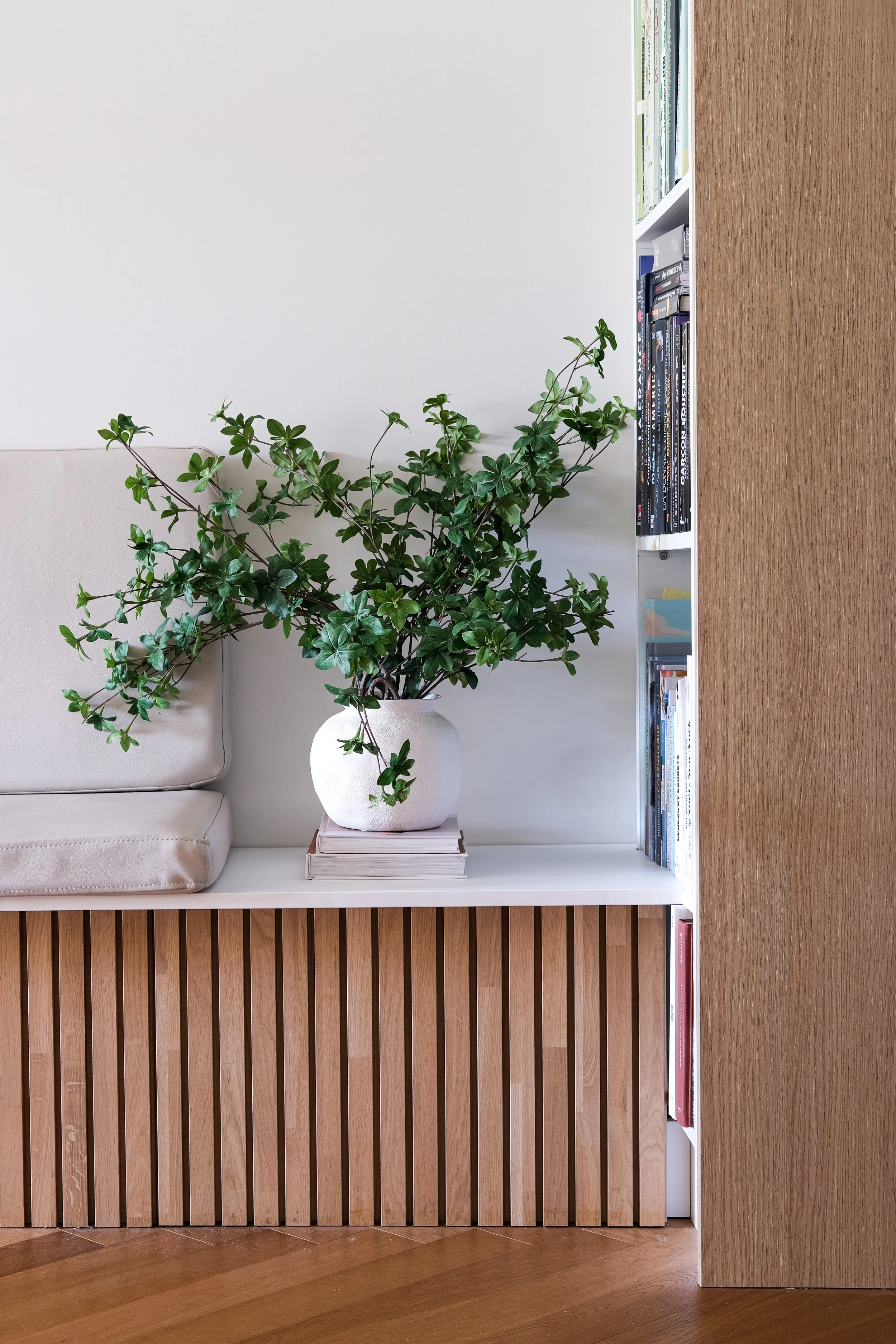Dans le cadre de la rénovation d’un appartement en Presqu’île de Lyon, PI Dam a conçu et réalisé des aménagements intérieurs sur mesure pour valoriser chaque mètre carré. Cuisine, salle de bain, dressing, bibliothèque, meuble TV, moulures, parquet, placards de chambres, cimaises,… Amener une touche contemporaine dans un appartement résolument ancien, en optimisant les rangements.